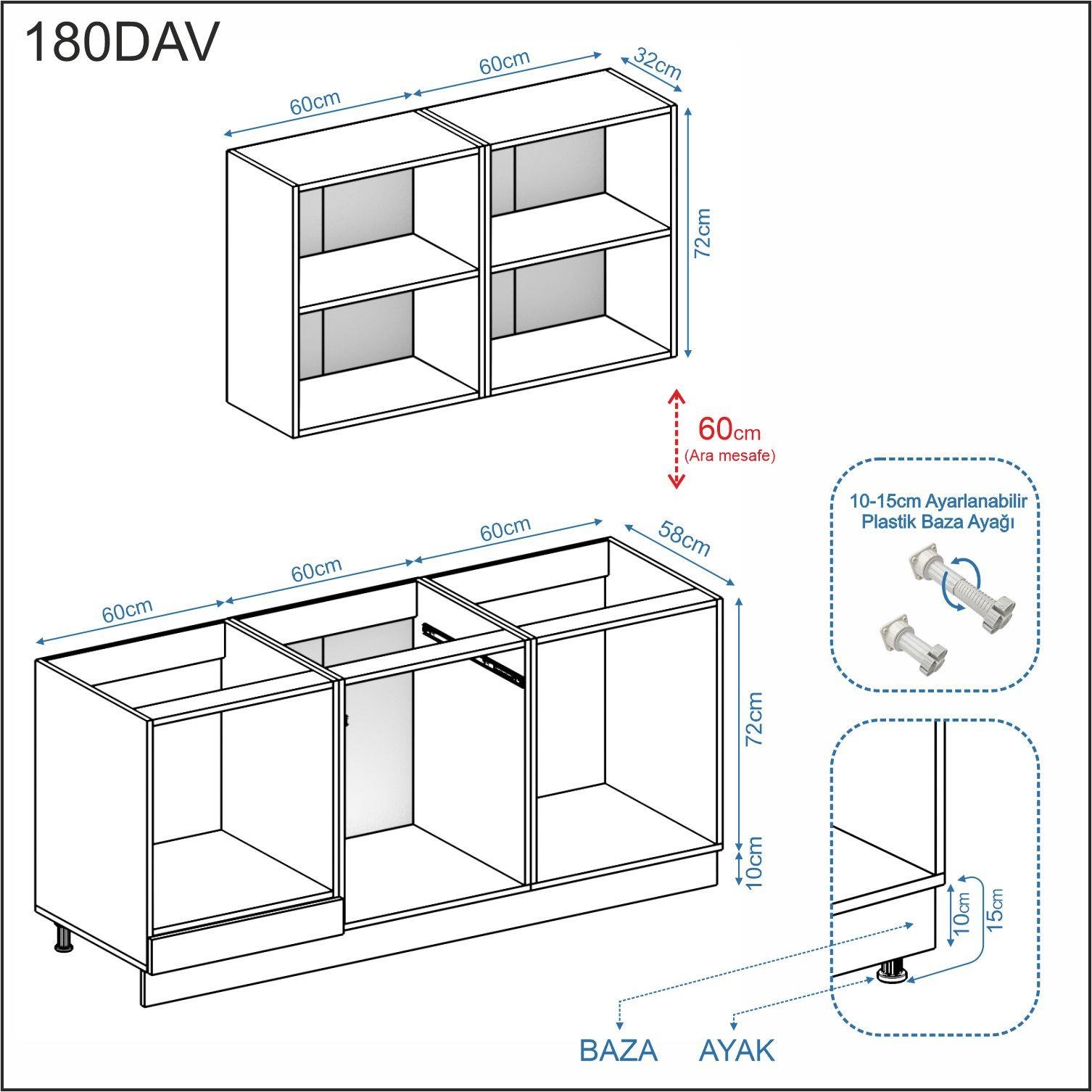 Dekorex olarak, müşteri memnuniyetini ön planda tutarak en kaliteli ve modern ürünleri sizlere sunuyoruz. Dekorex Alba Seri̇si̇ 180 Cm Hazır Mutfak LS-180dav-st modeli, hem estetik hem de işlevsel açıdan beklentilerinizi karşılamak için tasarlanmıştır.