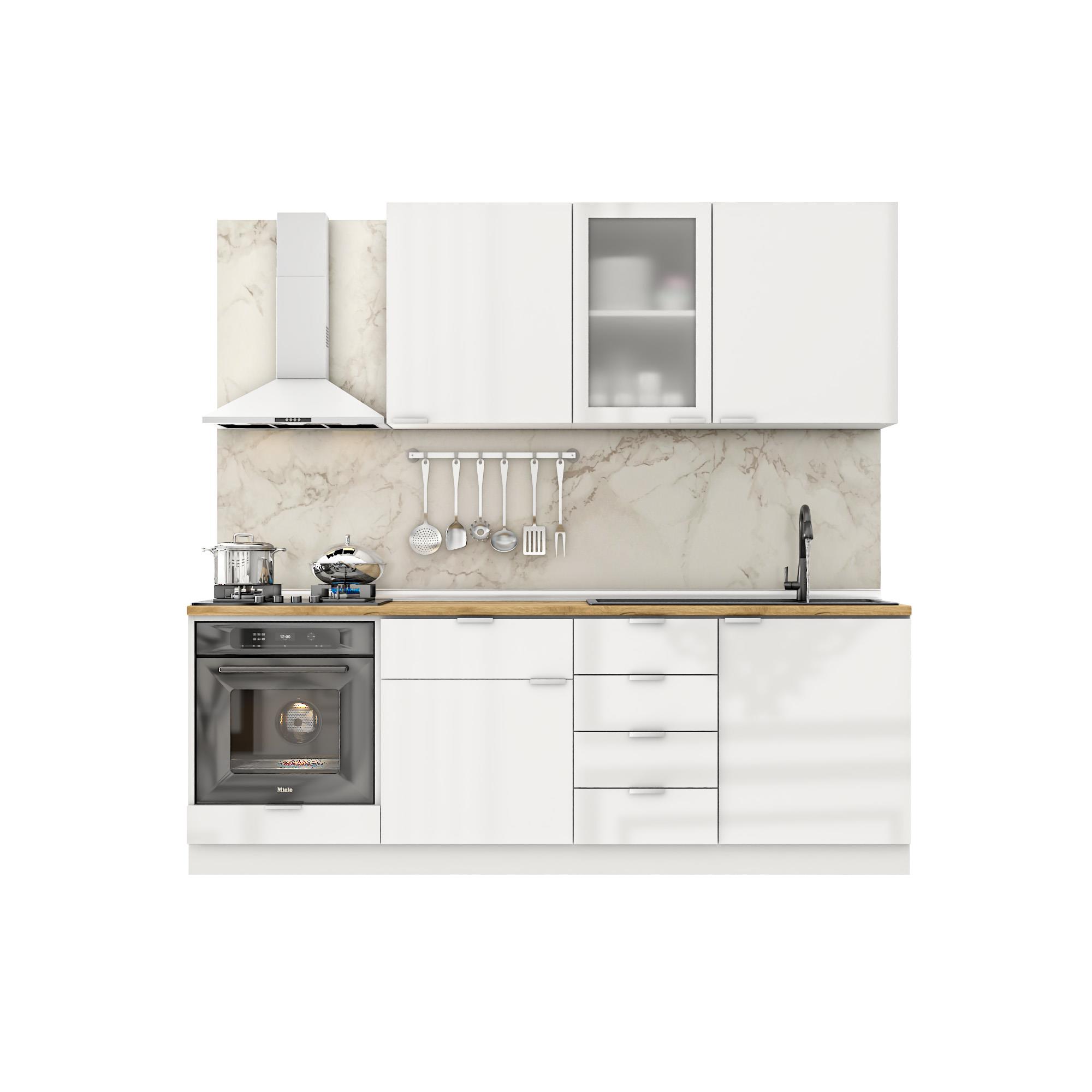 Dekorex Elsa Serisi 225 Cm Beyaz Fırın Modüllü Meşe Tezgahlı Hazır Mutfak Ls-225dav-mt