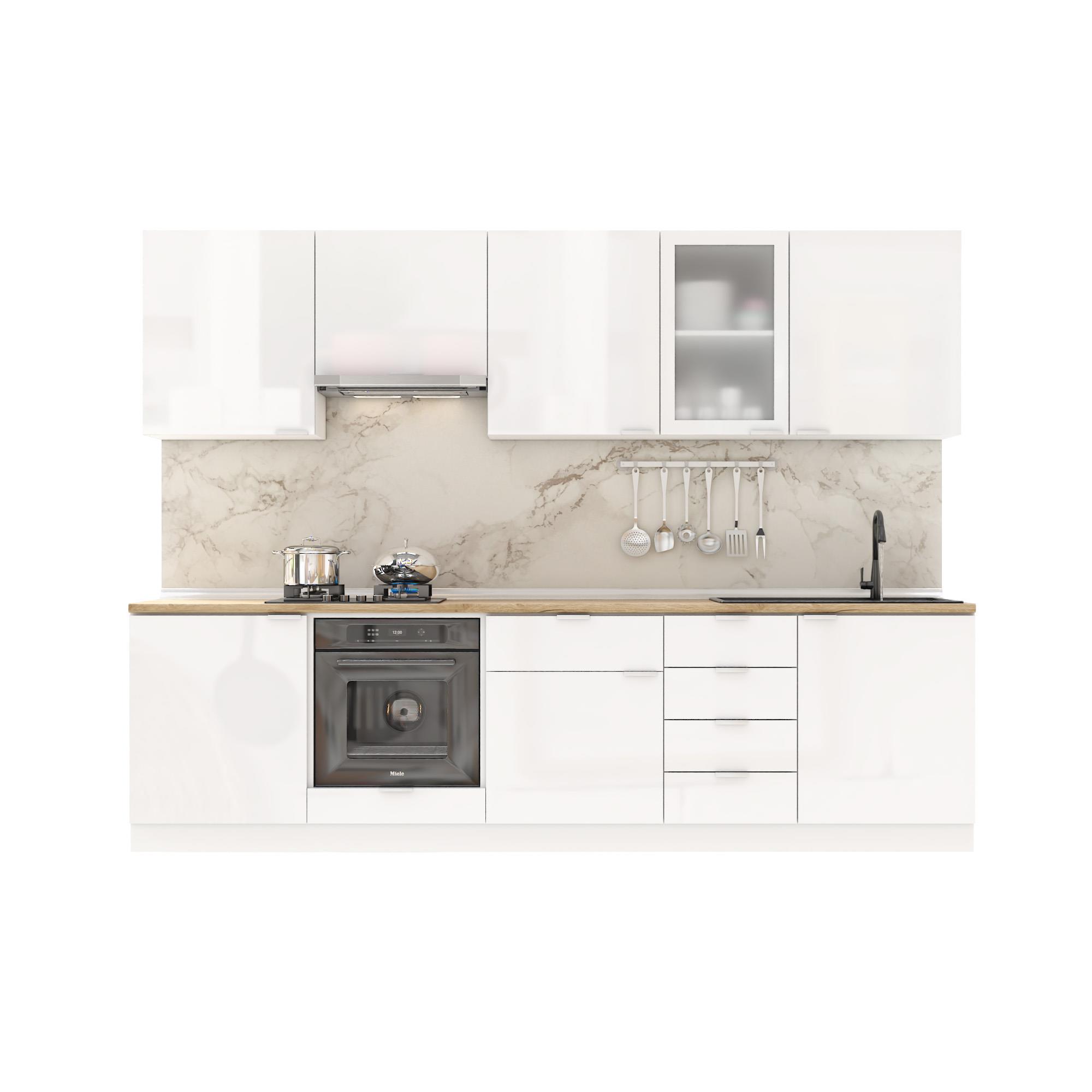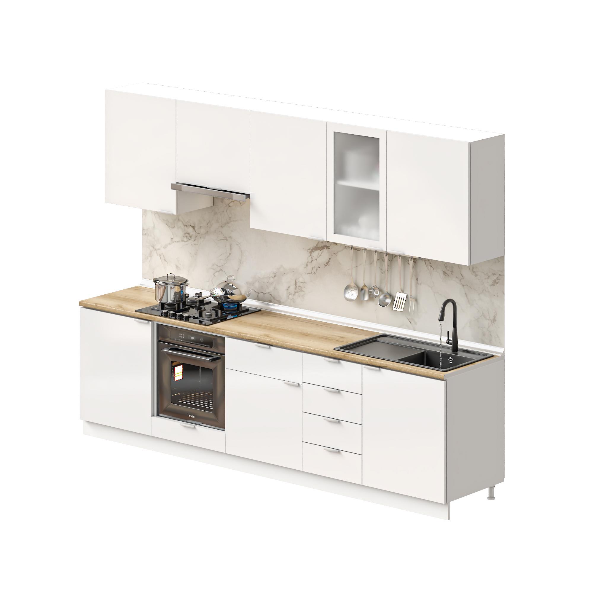 Dekorex Elsa Serisi 285 Cm Beyaz Aspiratör Ve Fırın Modüllü Meşe Tezgahlı Hazır Mutfak Ls-285asp-mt